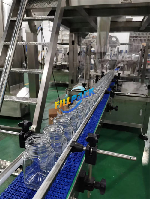 This jar filling machine is suitable for weighing granules, slices, rolls, or irregular shape materials such as cereal, pasta, candy, seed, chips, coffee beans, nuts, puffy food, biscuit, chocolate, pet food, frozen foods, canned fruits, salted vegetables, etc.